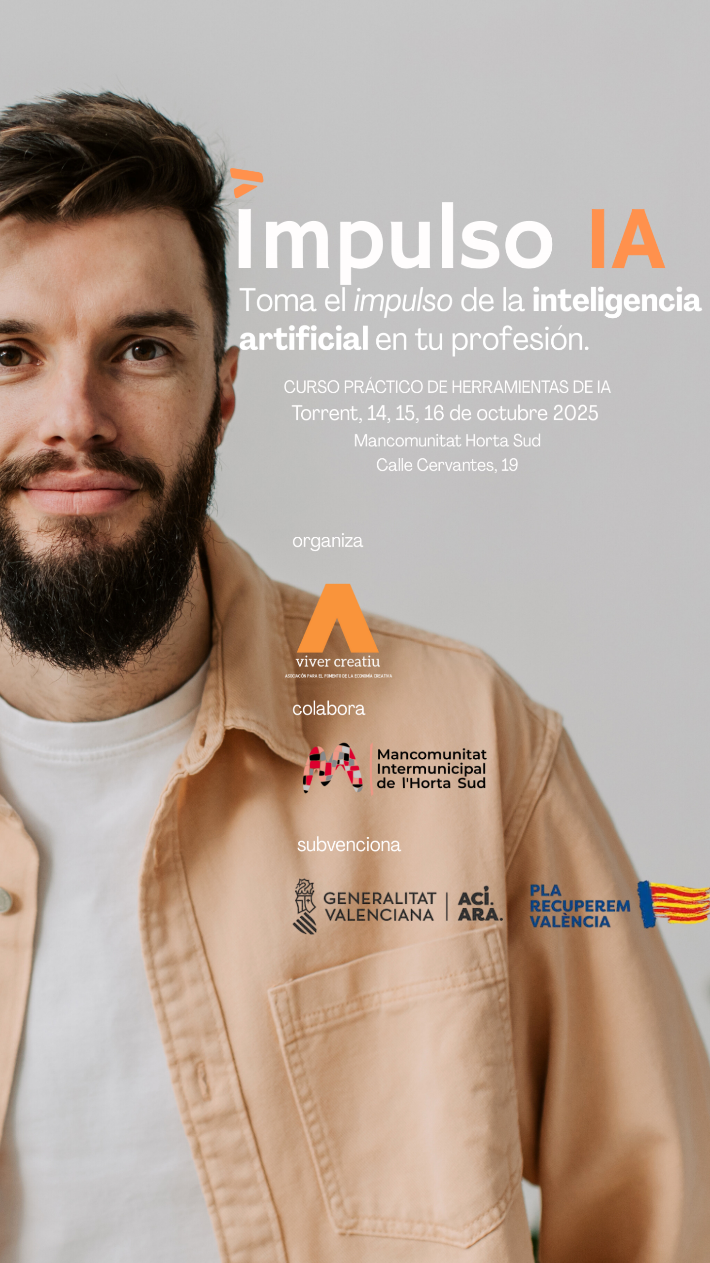 Donde la tierra se recupera, la inteligencia transforma. Impulso IA: el proyecto que está redefiniendo el futuro desde el corazón de la zona DANA. Impulsado por Viver Creatiu con el respaldo de la Mancomunitat de l’Horta Sud y la Generalitat Valenciana, este proyecto transformador nace de nuestra capacidad de resiliencia para convertir la adversidad en una oportunidad. No nos limitamos a reconstruir, sino que utilizamos la inteligencia artificial como la herramienta clave para construir un futuro más competitivo y eficiente para nuestros profesionales y empresas, asegurando que el conocimiento y las oportunidades crezcan y se queden en nuestra comarca.